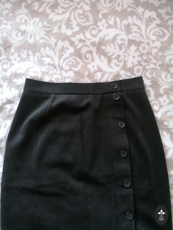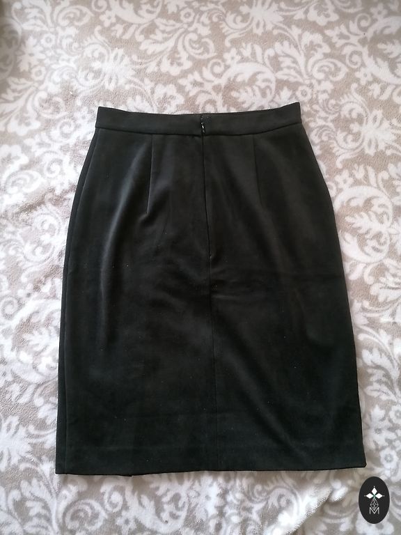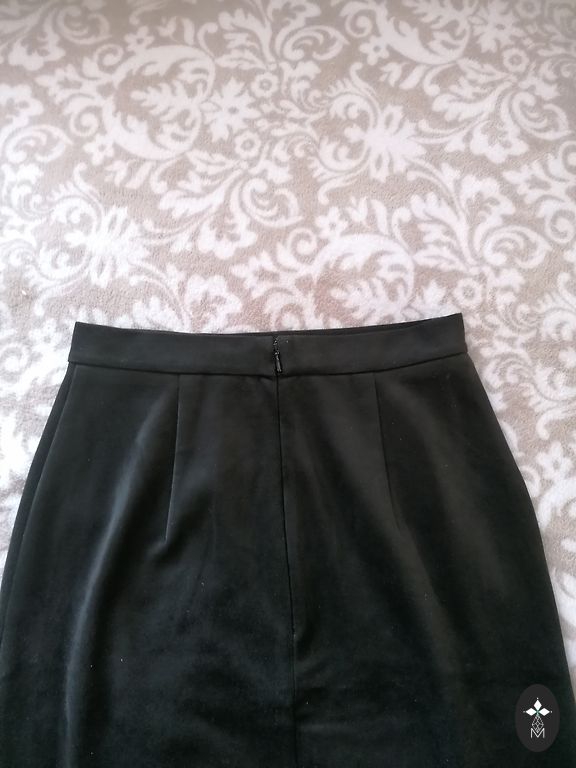 Tihe materjal sädelevate detailidega, talje 72 cm, puusad 92 cm ja pikkus 47 cm.