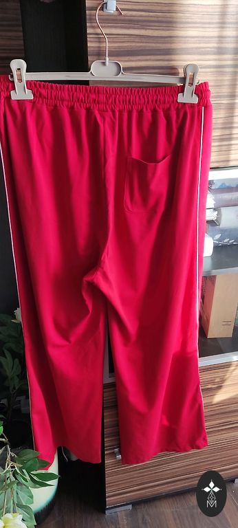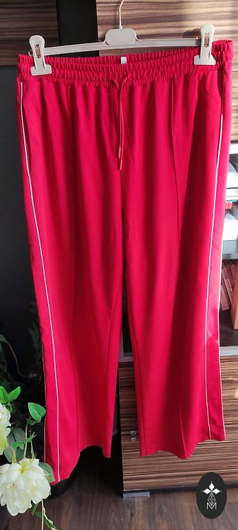 Pants measurements: waist from 80-106cm, hips 110-130cm, length 102cm. Tapered down and elastic.