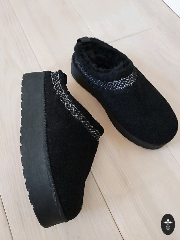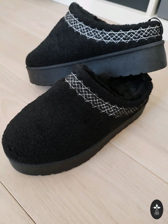 Jauni, tumšas šokolādes brūnas krāsas ugg tipa zābaki ziemai. Dabīga zamšāda, dabīga kažokāda viscauri iekšpusē. Neslīdoša zole. Izmērs norādīts 39, bet ir mazāki, derēs 38.izm. pēdai 🙂