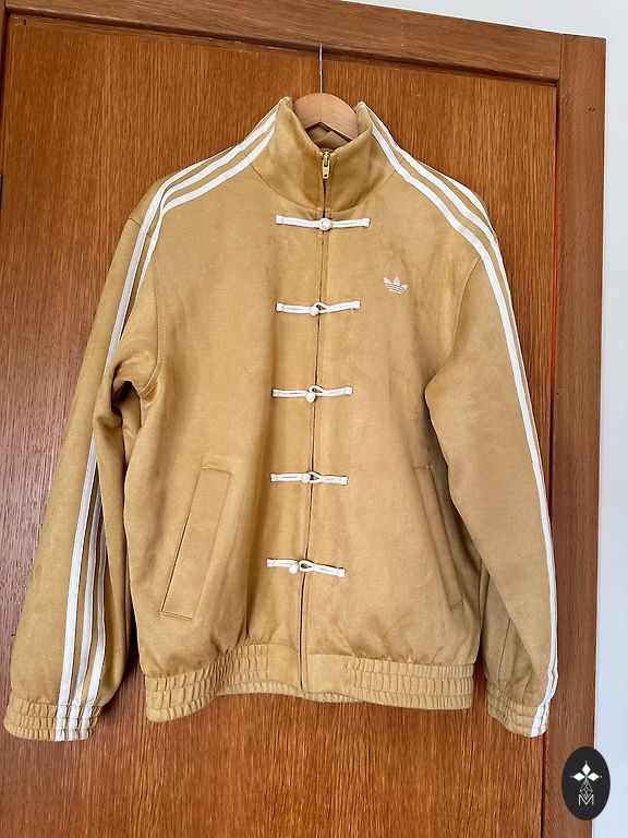 Sporta jaka nopirkta jauna .Nav vilkta staveja skapī jo pašai atnaca par mazu neder.Bet ieraudziju kad ir mazs pleķītis bildē redzams neliels.