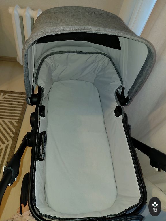 Teleskopinė rankena, trys rėmo pozicijos. Tinka nuo gimimo iki 2-3 metų.