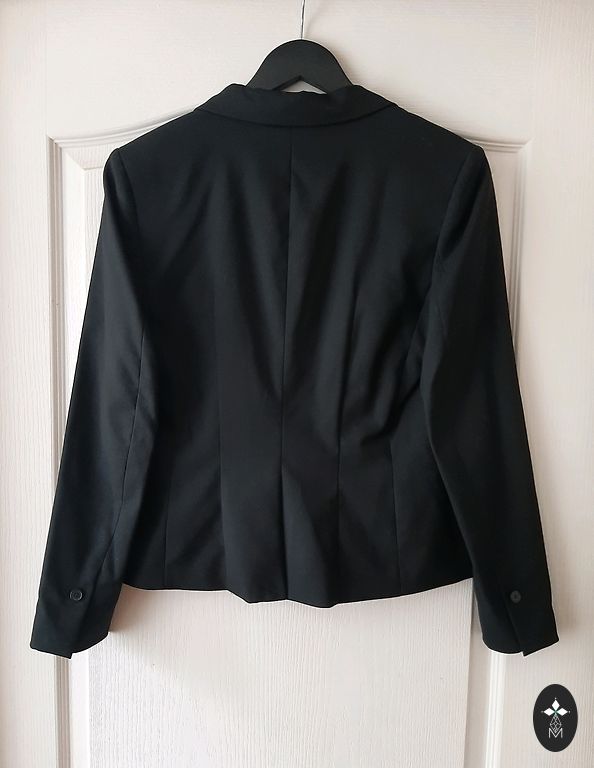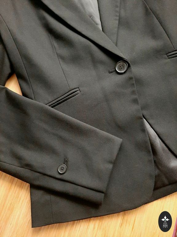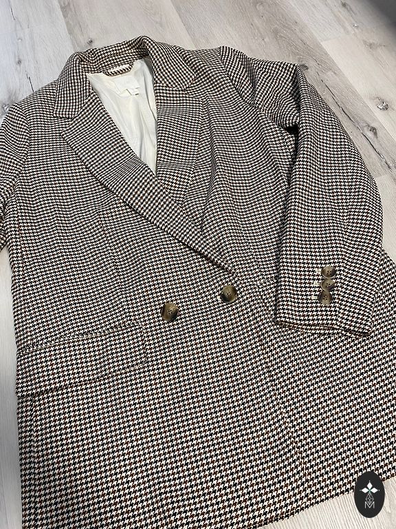 Современный жакет с застежкой на пуговицы и карманами. По поводу размеров пишите в личку. Подойдет для размера S-M.