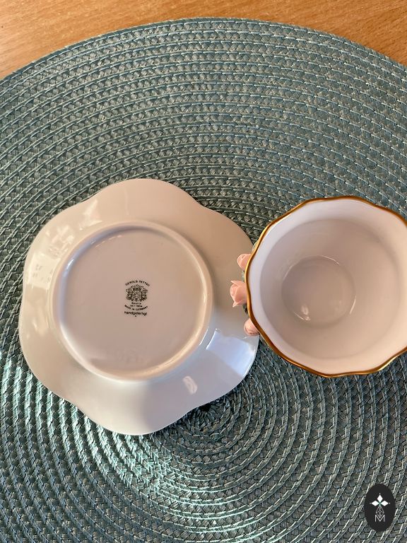 Three Regina saucers. There is gold wear visible in pictures. Red seals. Price for all.