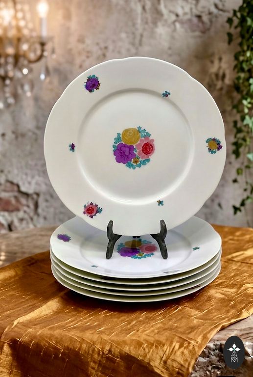 Эта великолепная фаянсовая тарелка украшена легендарным цветочным букетом и изящным фестончатым краем, которые олицетворяют элегантность Villeroy&Boch с 1748 года. Крошечная, едва заметная царапинка у центрального цветка — это лишь благородный отпечаток времени, подчеркивающий подлинную историю и винтажную душу изделия.