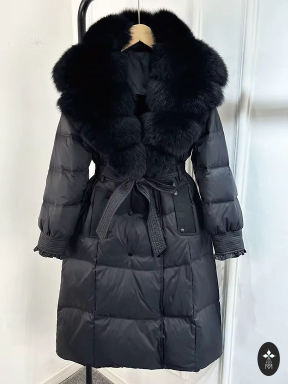 Tai yra prabangi, su šildančiu Premium Down užpildyta pūkinė striukė, kuri yra parko ilgio. Blizgantis išorinis audinys yra patvarus ir turi vėjo bei vandens atstumiančią apdailą. Striukė yra didelio dydžio, apykaklė yra aukšta, o nenuimamas gobtuvas užpildytas pūkais, kad užtikrintų komfortą ir apsaugą nuo sniego ir vėjo.
