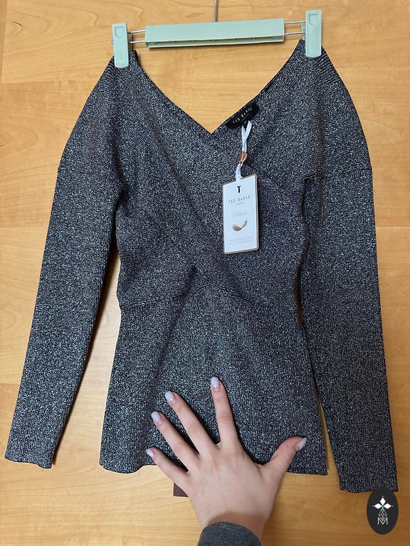 Naiselik kampsun läbipaistvate elementidega käistel. Suurus pole märgitud, kuid sobib XS, S suurusele. Minu 38. suuruse jaoks veidi lühike.