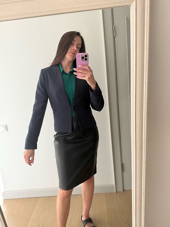 Ilus jakk superlahedate pärlnuppudega. Märgitud suurus 44, kuid tegelikult on 40 ehk L. Vintage. Sinine, kuid mulle meenutab rohkem sirelivärvi.
