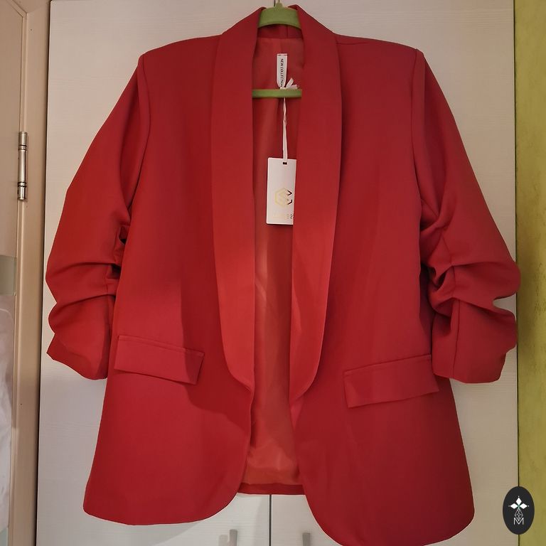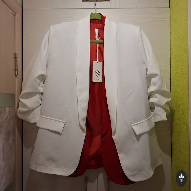 Žakete ar oderi. Plecos 42 cm, krūtīs 98 cm, piedurkne 62 cm, garums 72 cm.