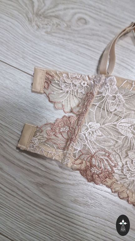 Traadita vaba mudel. Must ja beež pitsäärega. 2tk pakendis, lisatud karbi pildid. Sobib suurustele: 80C, või 75C ja D Venitamata, täispikkus 75cm, hästi venib, maht reguleeritav. Materjal pehme, meeldiv, on väike täidis, säilitab kuju.