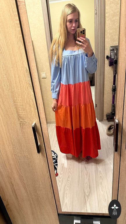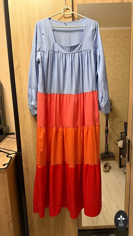 Длина ~140, грудь - 130, талия - 120, есть резинка.