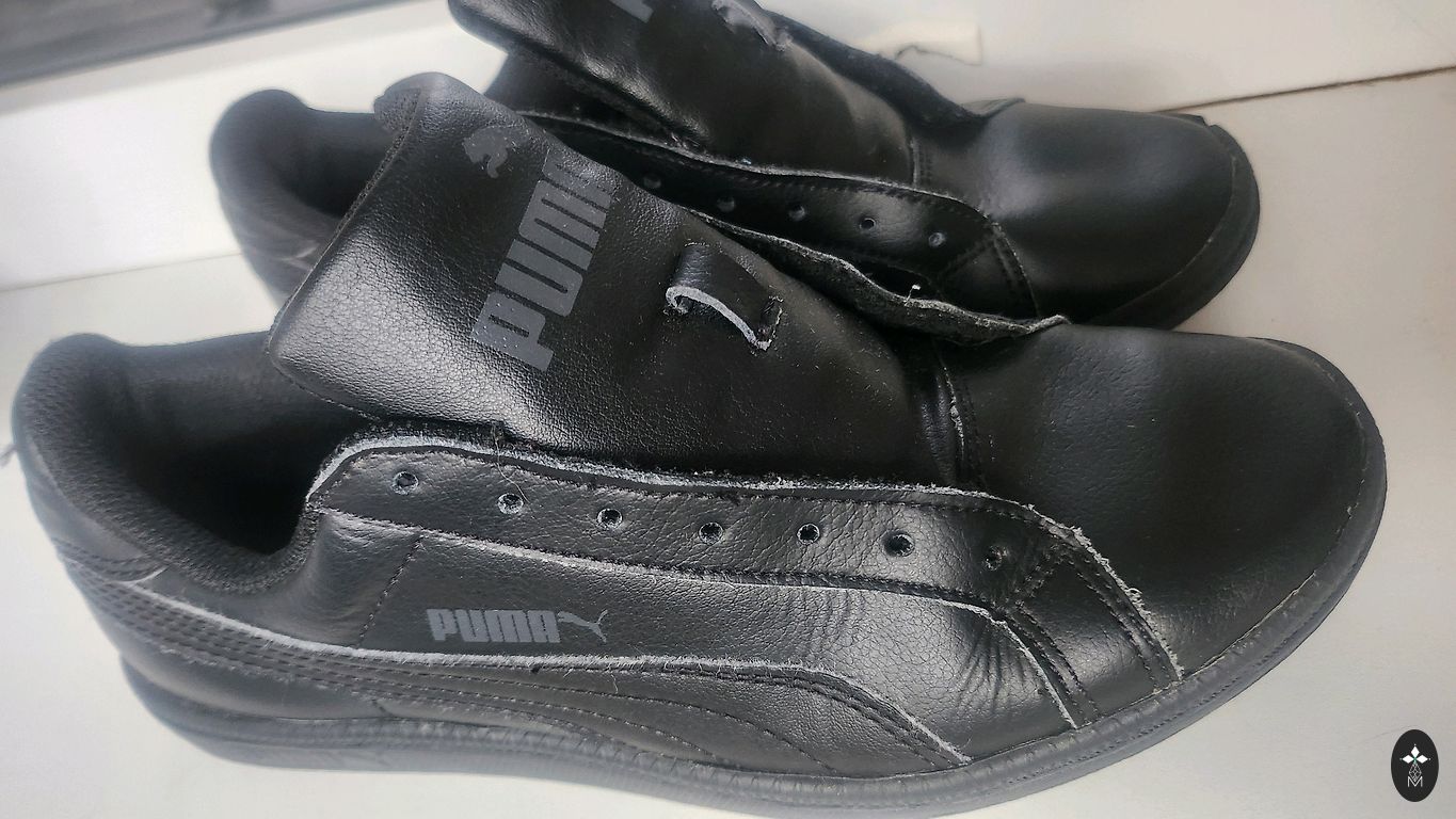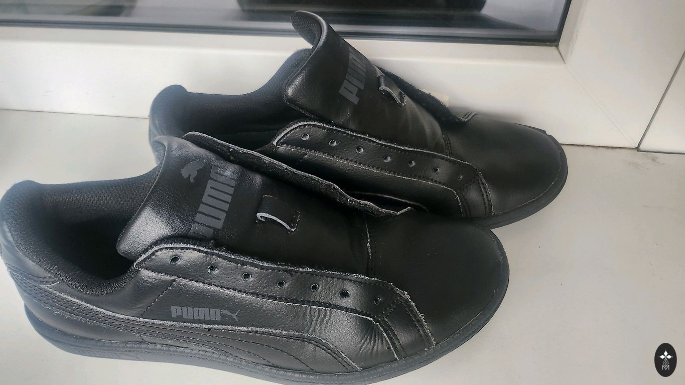 Adidas Ortholite jalatsid. Nööride ees, hõõrdumise tõttu, kangas on topiliseks muutunud.