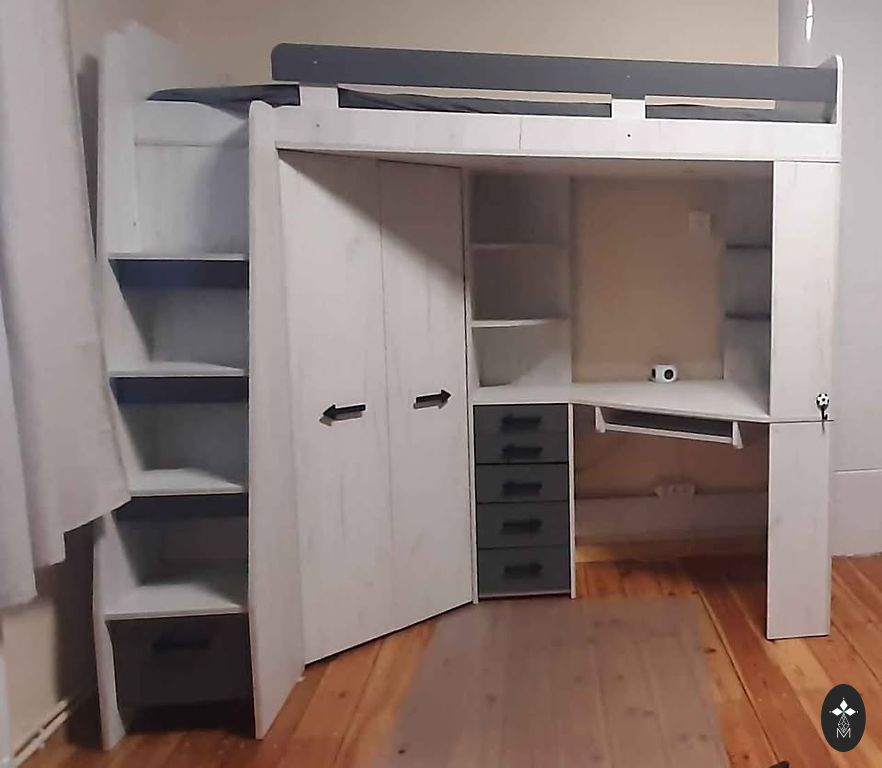 Selling a very stable and massive bed with the mattress included. Nightstands are part of the set as they are built-in.