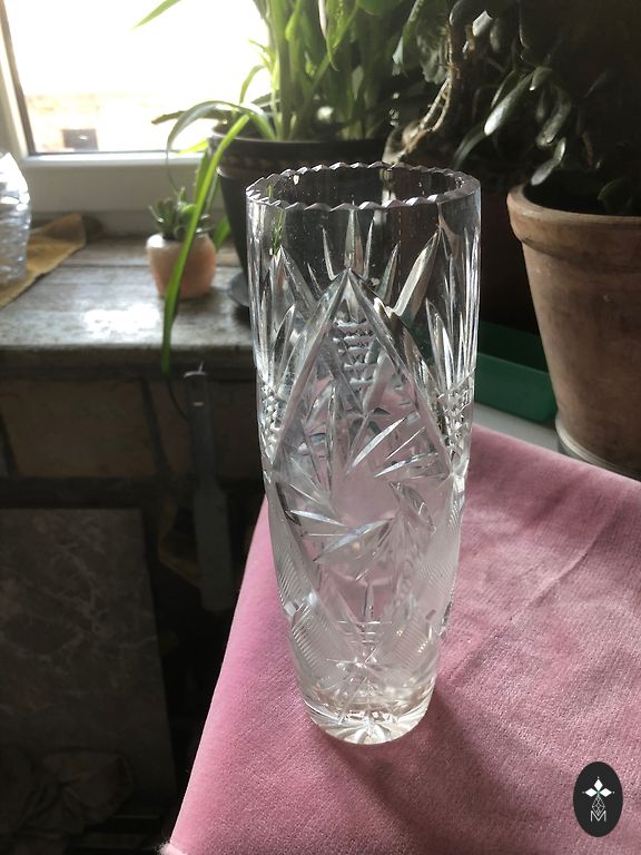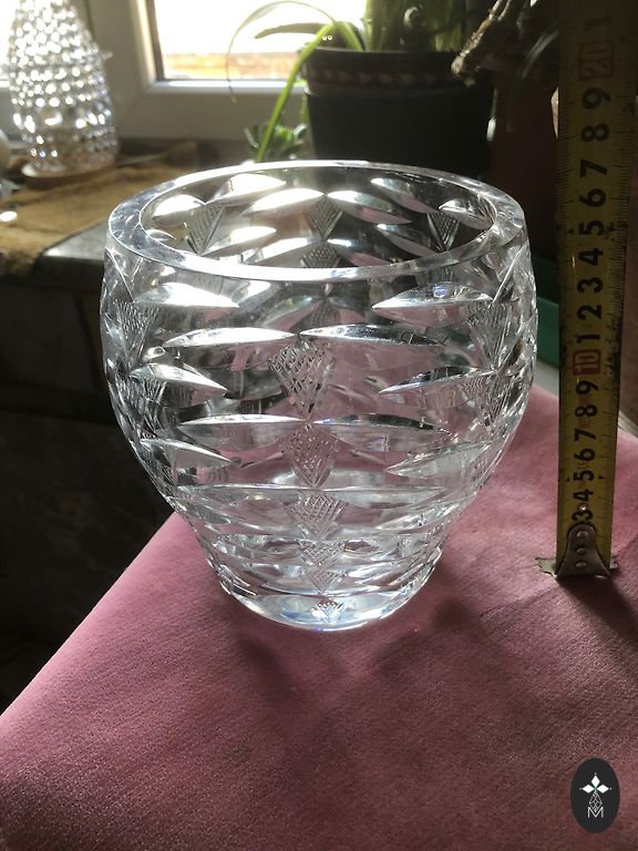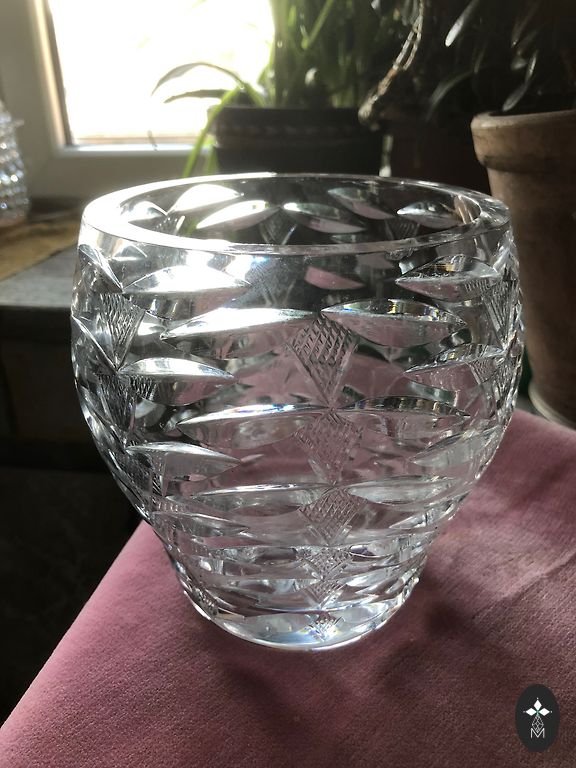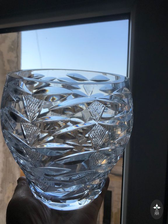 Krištolinis vazas sunkus, storasienis, gilios briaunos - visas spindi saulėje!