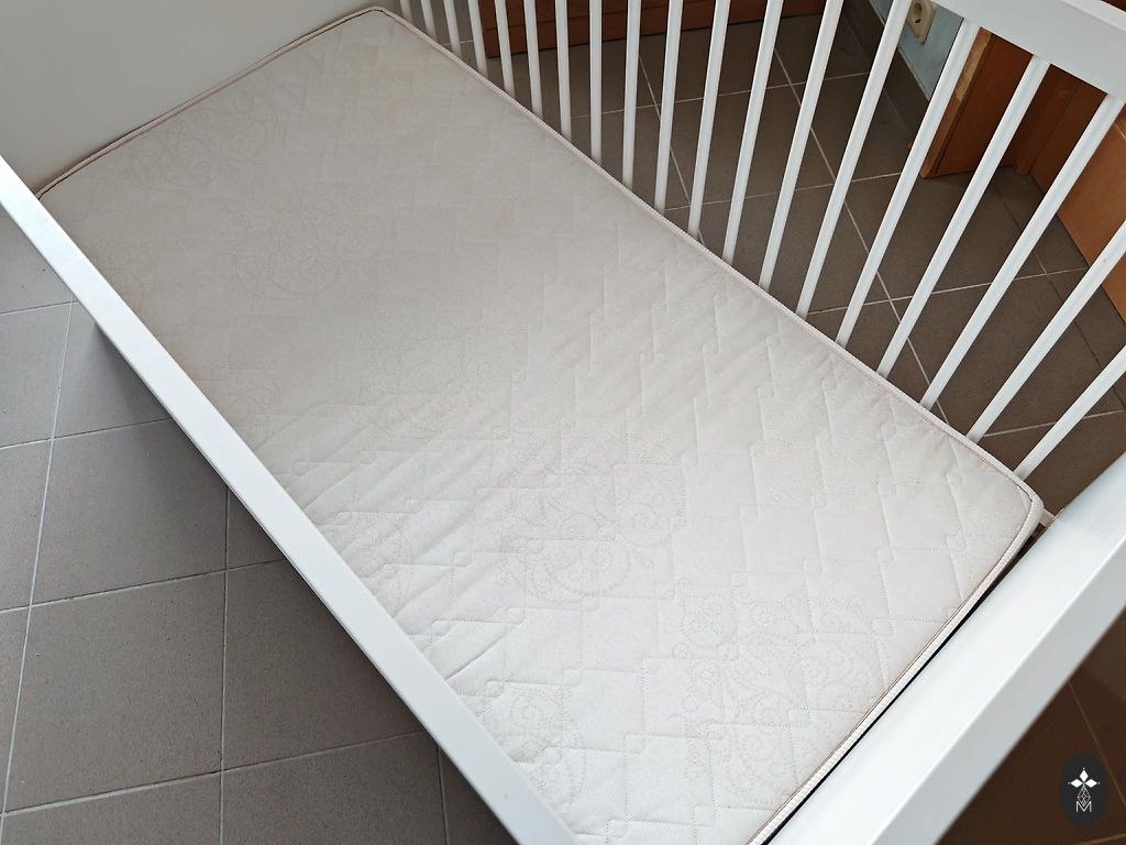 Кроватка с матрасом и ящиком для белья.