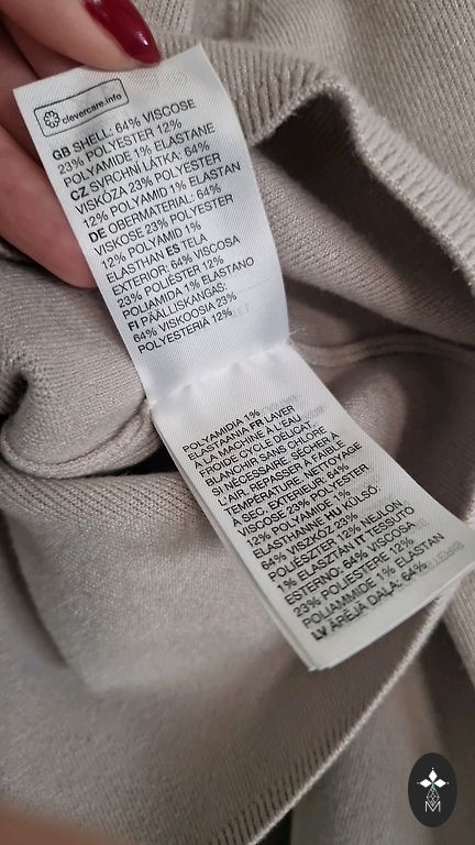 Complex taupe color - between grey and brown. Size L indicated, I myself am M - not so form-fitting.
