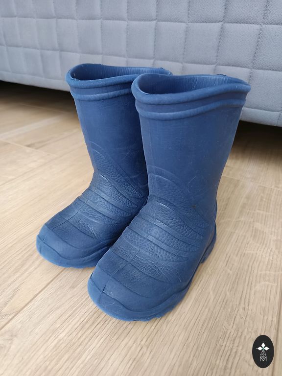 Soojad ja mugavad Crocsi saapad lastele sinises toonis oranžide detailidega.