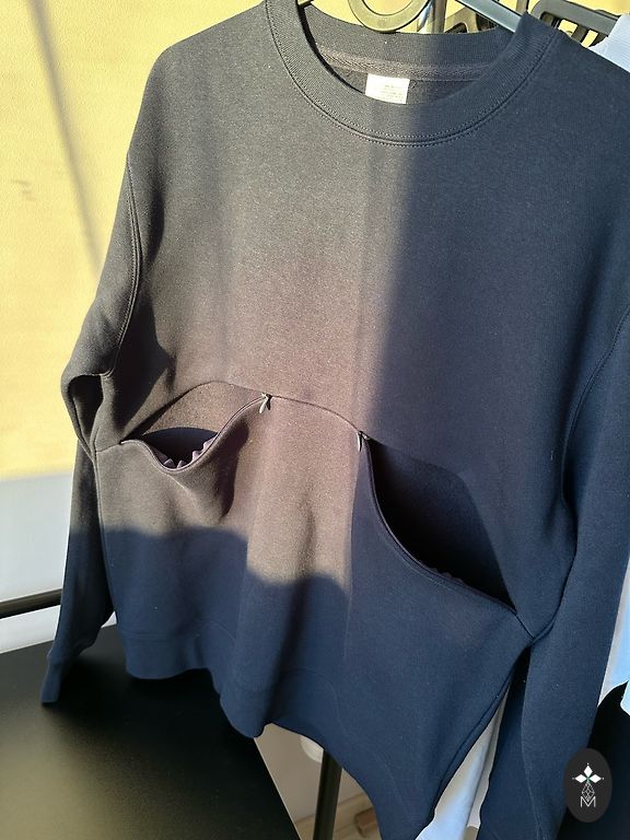 Selling a warm hoodie with a breastfeeding function in "dustymint" color. Size M indicated, but it's oversized. Warm and soft.