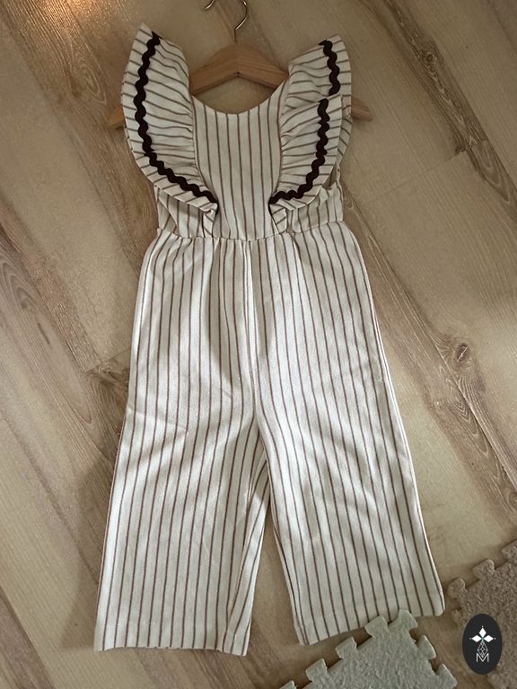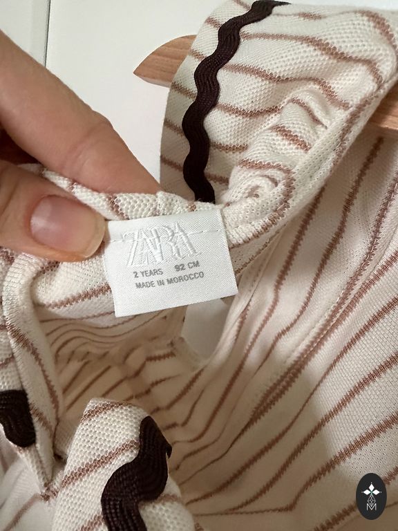 Tikanditega sarafan - umbes 6-aastasele. Pikkus 62 cm. Laius kaenla all 35 cm. 70% puuvill, 25% akrüül, 5% muud kiud. Tootjariik - Itaalia. Võimalik osta koos puuvillase särgiga - kokku 8 eurot, särk on veidi suurem suurus - 122-128 - umbes 7-aastasele.