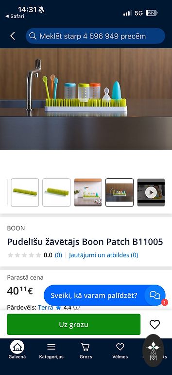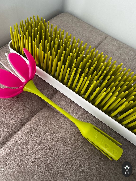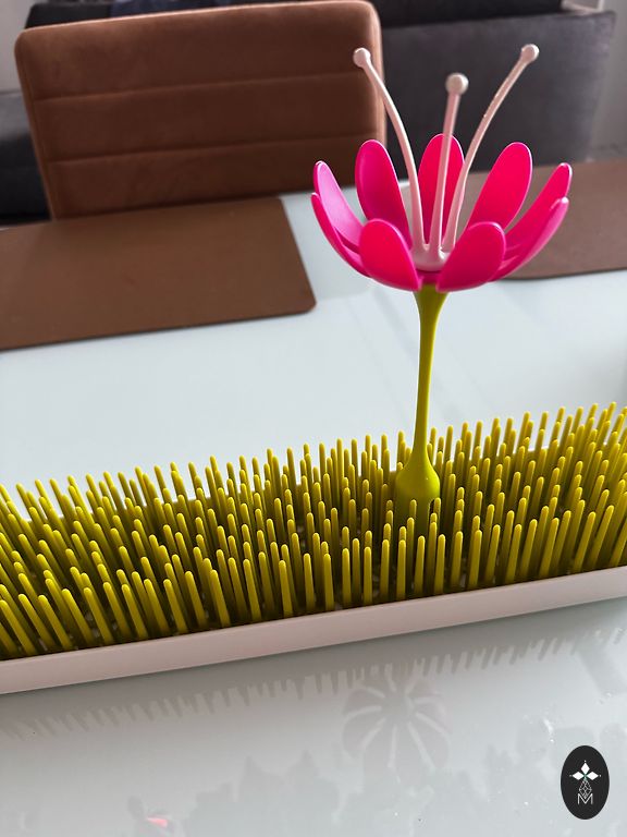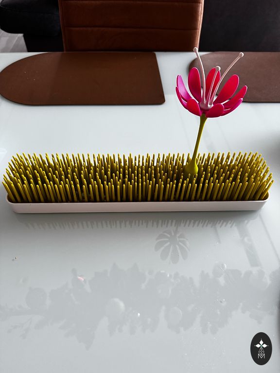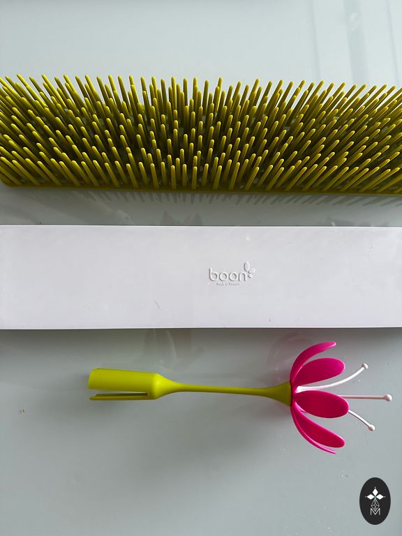 Lietots pudelīšu žāvētājs. No kastē stāvēšanas viens gals kļuvis dzeltenīgs paliktnim