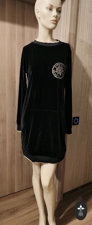 Dydis nurodytas M, UK10. Ilgis 100 cm, krūtinėje, juosmenyje 52 cm. Pečiai 40 cm, rankovė nuo peties 49 cm.