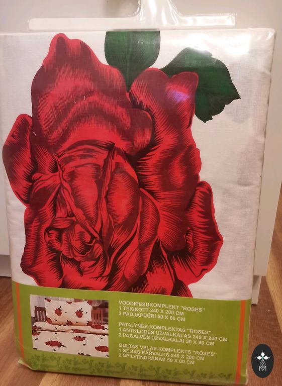 Labai kokybiška patalynė. Nauja, neplauta, šiek tiek pageltusi nuo stovėjimo, tačiau tai išsiskalbia. Dalinuosi, konvertavimo kaina 18 eurų, viena pagalvės užvalkalo kaina 8 eurai.