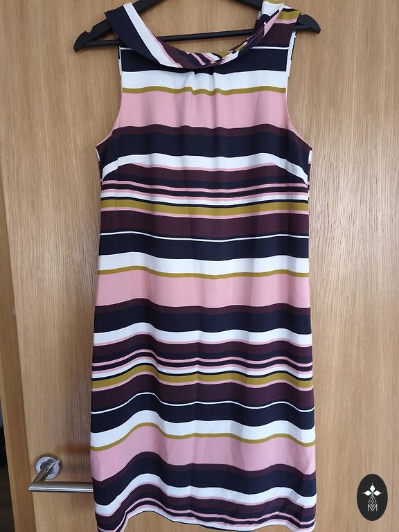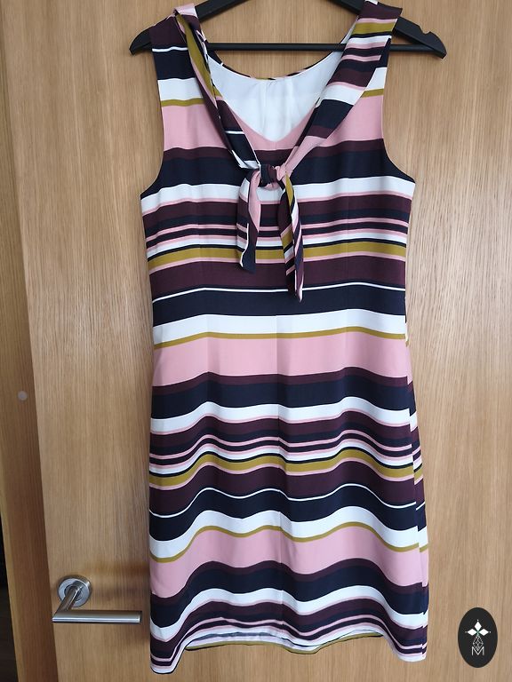 Naudota, geros būklės. Stilinga, prigludusi pilka suknelė su aukšta apykakle ir atvira nugaros dizainu. Audinys elastingas, malonus kūnui, gerai priglunda prie figūros. Tinka tiek kasdienai, tiek derinimui su švarku ar megztiniu.