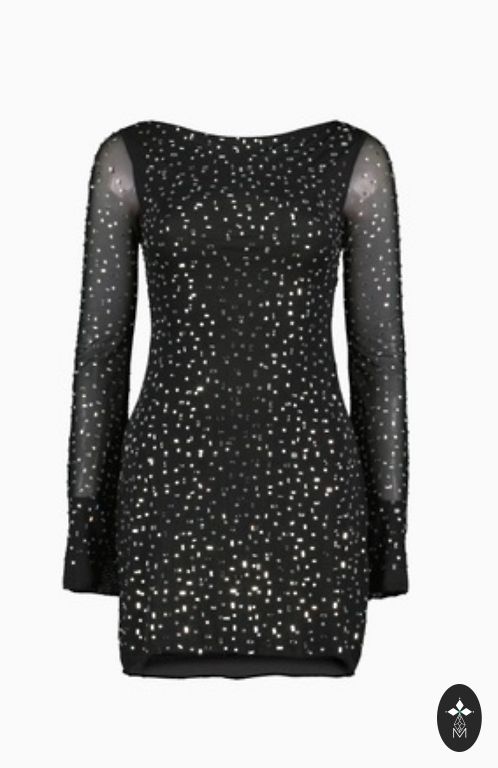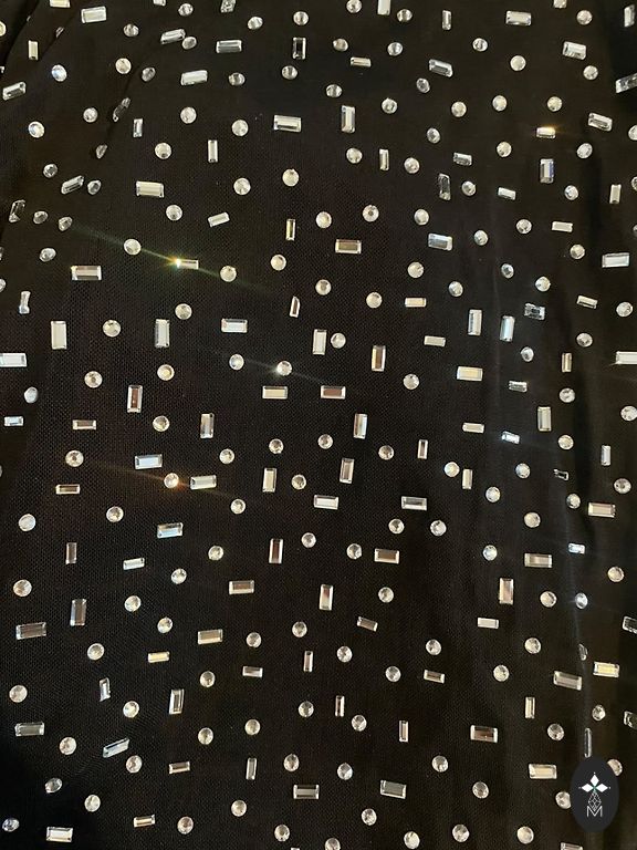 Prabangus megztinis su karoliukų ir akmenų siuvinėjimu.