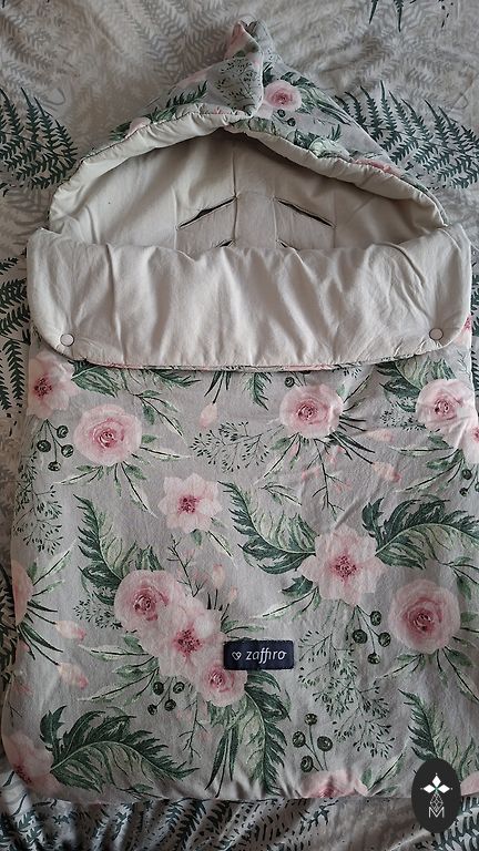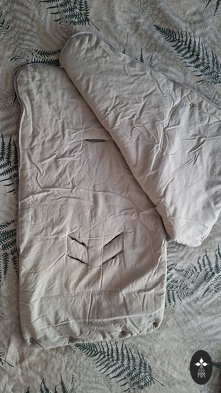 Outer fabric: 100% polyester Inner fabric: 100% polyester, 100% wool The sleeping bag is waterproof. The ability to adjust the length means it can be used for modern deep strollers, wheelchairs, car seats, and sleds.