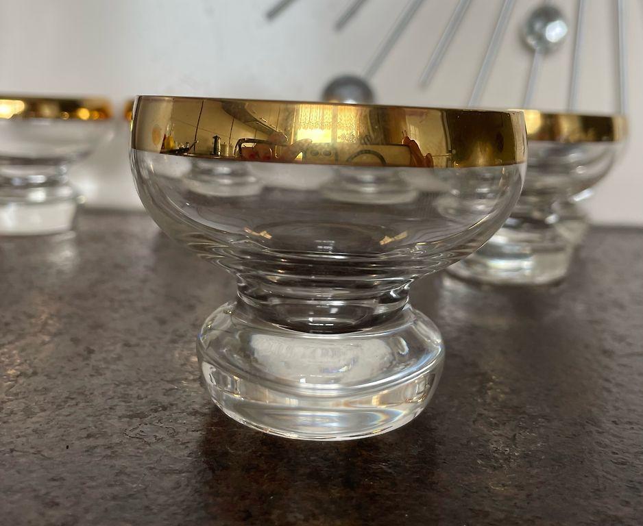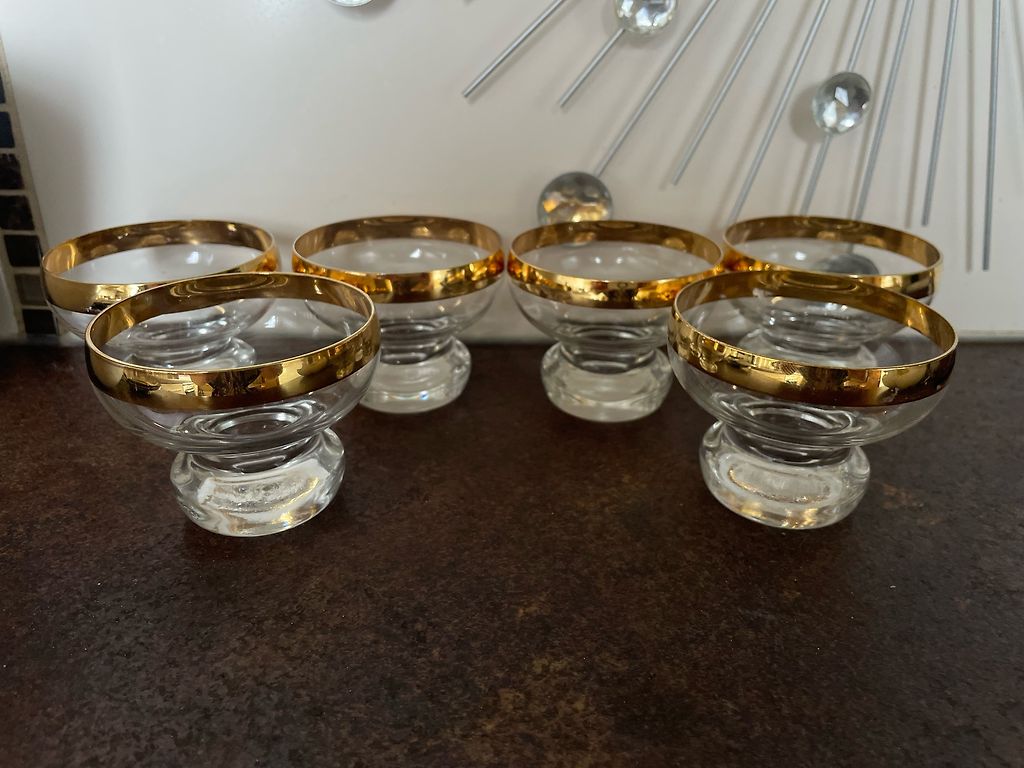 Stiklinės anksčiau buvo naudojamos, bet be įtrūkimų ir smūgių. Vietomis stikle matomi nedideli oro burbuliukai, tačiau tai yra technologinio proceso dalis ir naudojimui netrukdo. Jų aukštis yra 17 cm ir gali būti naudojamos kaip vieno žiedo vazelės arba interjerui. Omnivą apmoka pirkėjas!