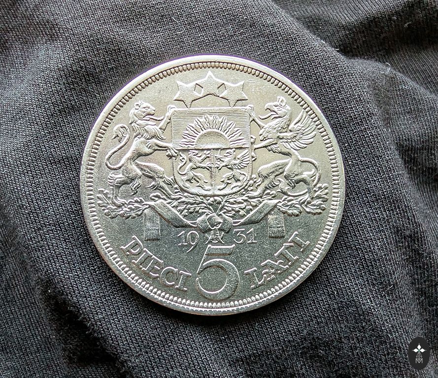 Müün suurepärases seisukorras hõbedast 5 lati münti, 1931. aasta.