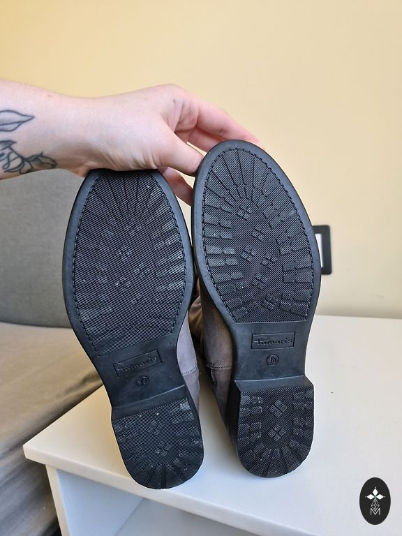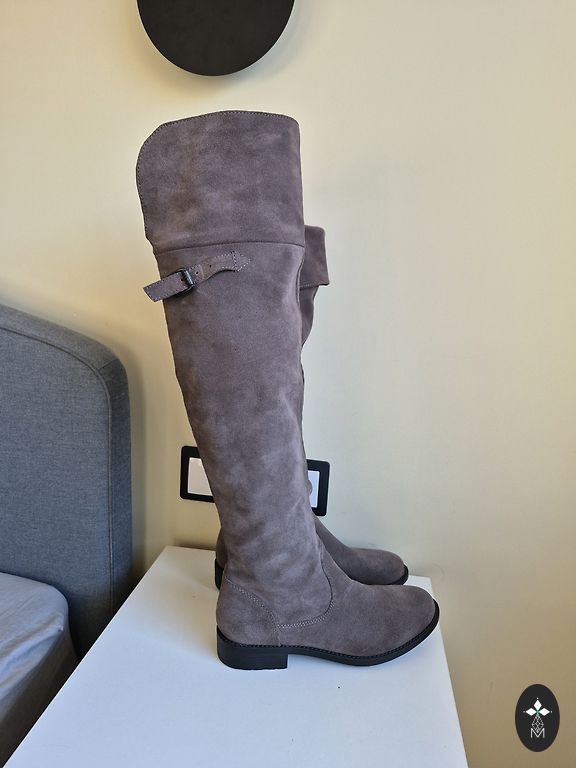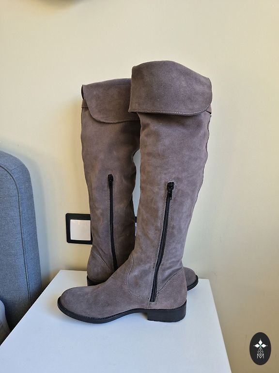 Mustad, elegantsed saapad. Pikkus üle põlve. Kantud vaid paar korda. Endale väga meeldivad, kuid pärast rasedusi pigistavad. Sisseehitatud lukk, mis teeb jalga panemise mugavamaks. +pakiautomaadi kulud.