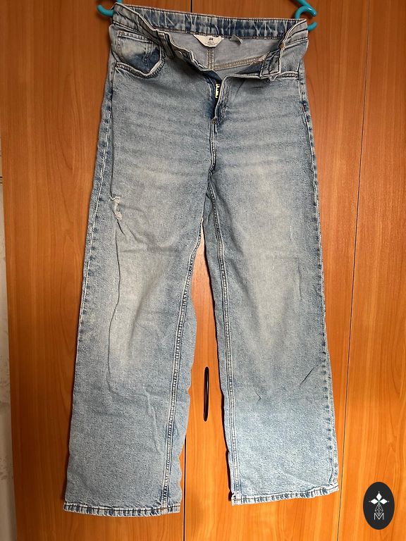 Laia teksapüksid kergelt pleekinud efektiga. Reguleeritav vöökoht.