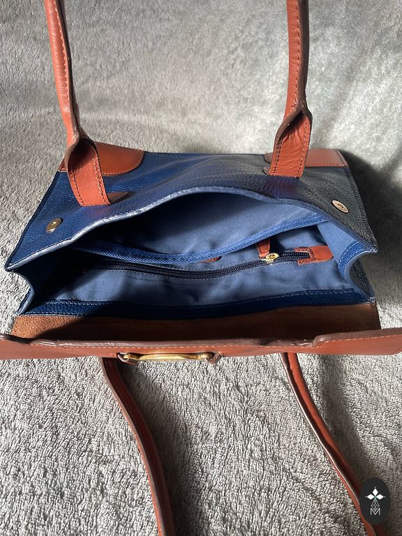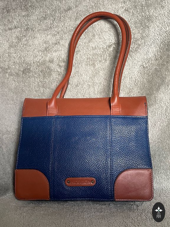 Väikese suurusega kott sinises värvitoonis. Nahk. Seisukord perfektne. Pikk õlarihm pole ette nähtud. Kõrgus 22 cm, laius 27 cm. Alumise osa laius 12 cm. Ideaalne üritusteks, õhtusteks väljasõitudeks. Sees üks sügav tasku lukuga. Itaalia.