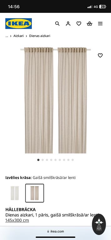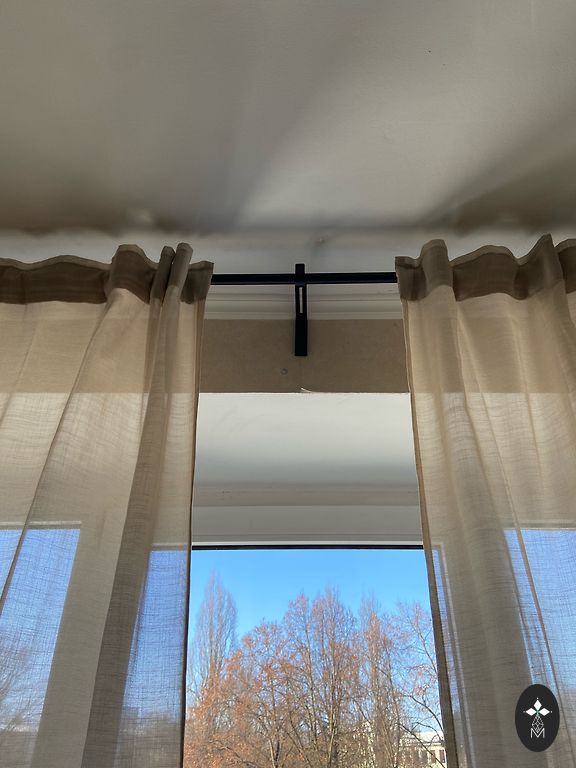 Heegeldatud linane kardin - 2 m × 64 cm