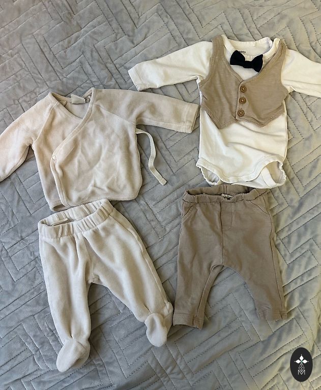Labai šiltas žiemos kombinezonas. Kelnės su atvirais ir uždarais galais, kepurės, striukės, megztinis, marškiniai, pižamos, ilgų rankovių bodžiai, trumpų rankovių bodis HEBE, dovanoju kartu šiltą leopardo rašto striukę (vienintelė, kuri turi trūkumą).