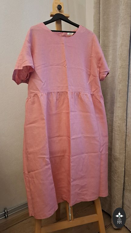 Cellbes Premium klasės lino suknelė su trumpomis rankovėmis.