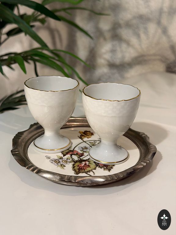 Винтажная тарелка для закусок на посеребренном подносе (23x13см.) тарелка 21x10см.