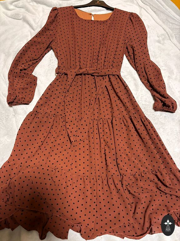 Kerge, õhuline, väga ilus kleit fantastiliselt ilusa kangaga. Kangas on peenelt gofreeritud väikese läikega. Fantastiliselt kerge, õhuline, ilus kleit igapäevaseks kandmiseks ja pidustusteks. Kleitil on volang ja vooder. Rinnaümbermõõt 112-114.