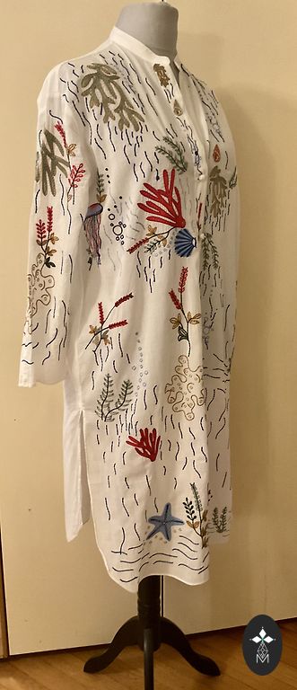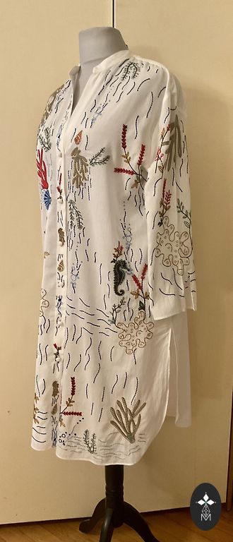 Front closure with zipper, front length 121 cm, back length 106 cm, shoulders 40 cm, between armpits 53 cm, hip circumference 122 cm