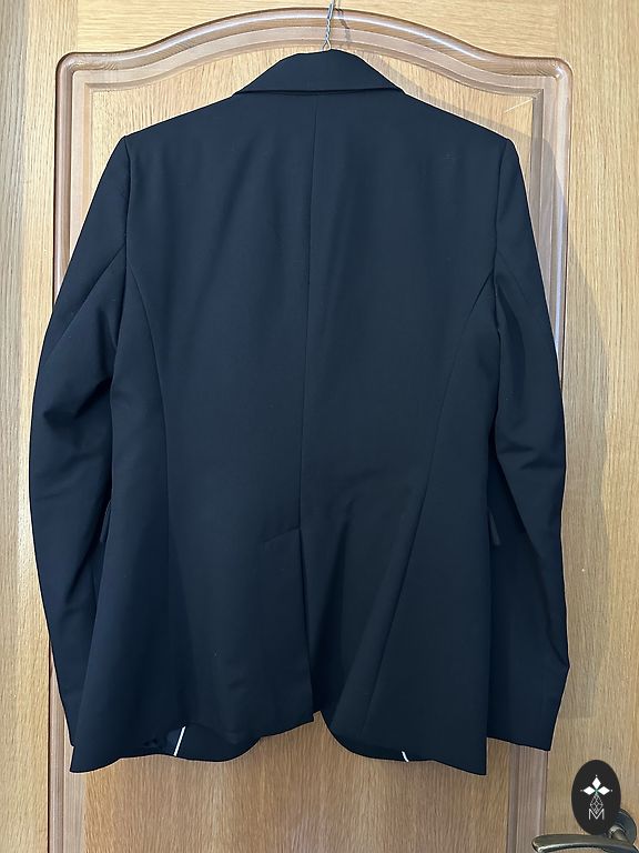 Red fitted jacket. Indicated size 40, but I think closer to size 38. Good quality. Chest 46 cm ×2. Sleeve length 61.5-62 cm. There are elegant slits at the sleeve ends of 5 cm. I send via Omniva or Dpd +2€.