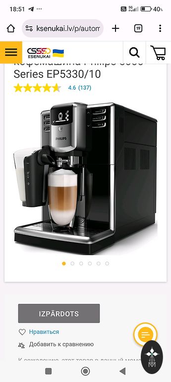Defektas – šiuo metu neveikia pieno putiklis (galima pataisyti).