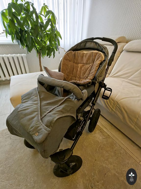 Коляски имеют очень хорошую амортизацию, большие колеса и легкое маневрирование – удобны как в городе, так и по лесным тропам. Ткани ухожены, механизмы работают безупречно. Коляски очищены и ждут нового владельца.