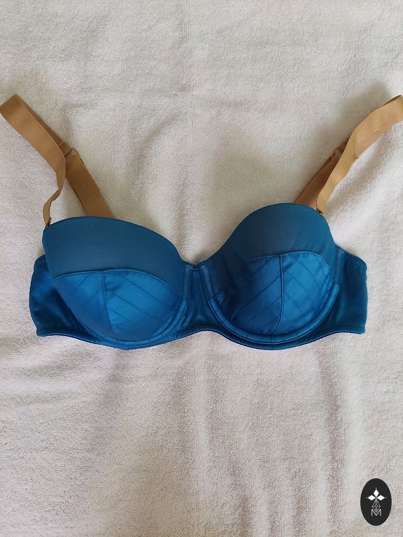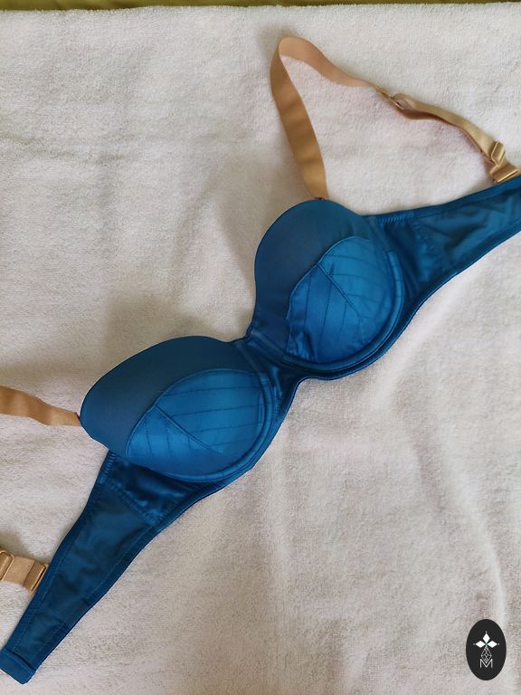 • Kvėpuojantis audinys: liemenėlė pagaminta iš poliesterio ir spandekso mišinio audinio, kuris yra lygus ir minkštas, kvėpuojantis ir prakaitą sugeriantis, švelnus odai. Visiškai be lankelių — nesuteikia didelio palaikymo, tačiau nesukelia įtampos jausmo.