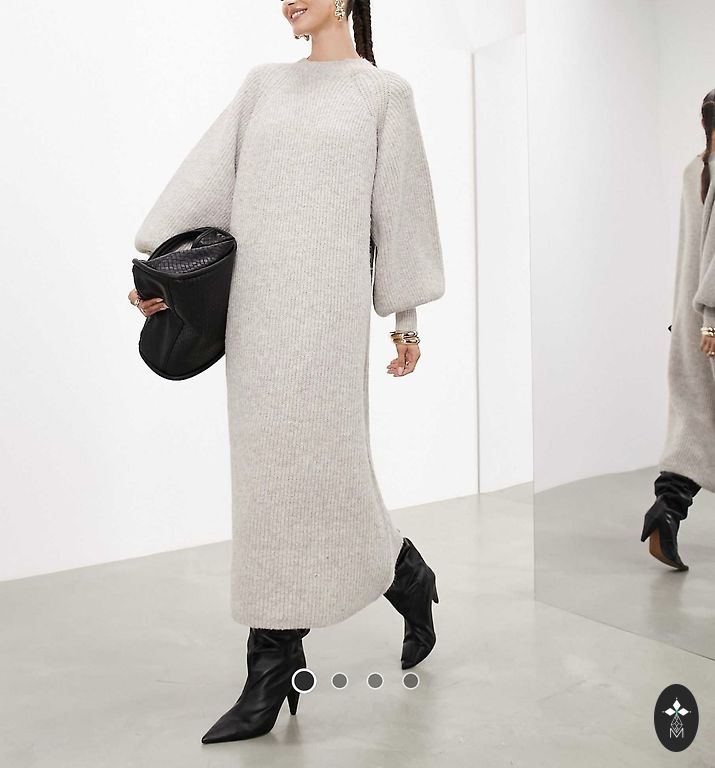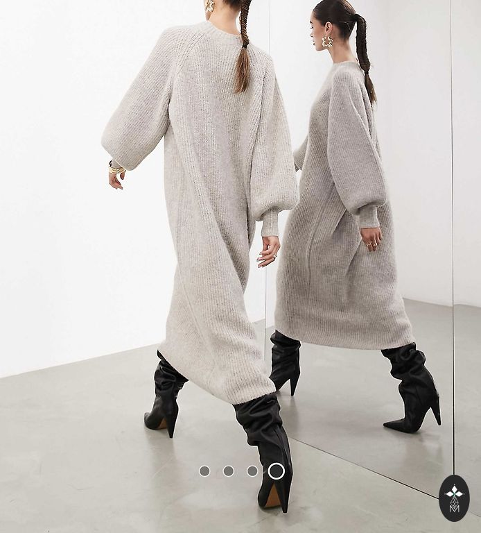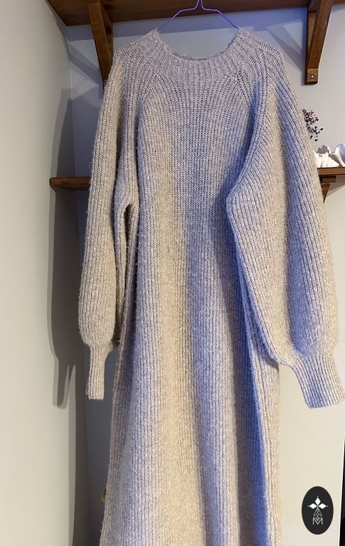Красивая, теплая и удобная платье с маленькими декоративными карманами и грубо вязаным воротником, который придаёт платью красоту! Его можно носить как с курткой, так и с пальто, так и с шубой! Длина сзади - 116 см. Ширина в области бедер - 55 см.