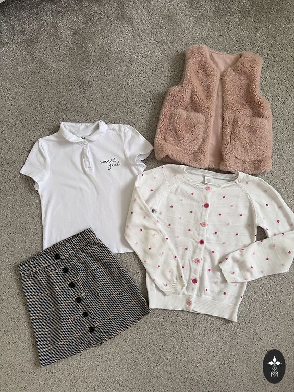Müün H&M pükse ja ilusat pluusi. Pükste vöökoht - kummiga. Mõlemad riided suuruses 134. Suurepärases seisukorras.