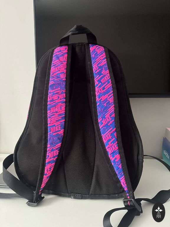 Nedidelis kasdienis kuprinė su vienu atidarymu, viena vidine kišene ir atskira kišene iš išorės. Naudota 2-3 kartus, nėra defektų. Patogu naudoti ir kaip peties krepšį.