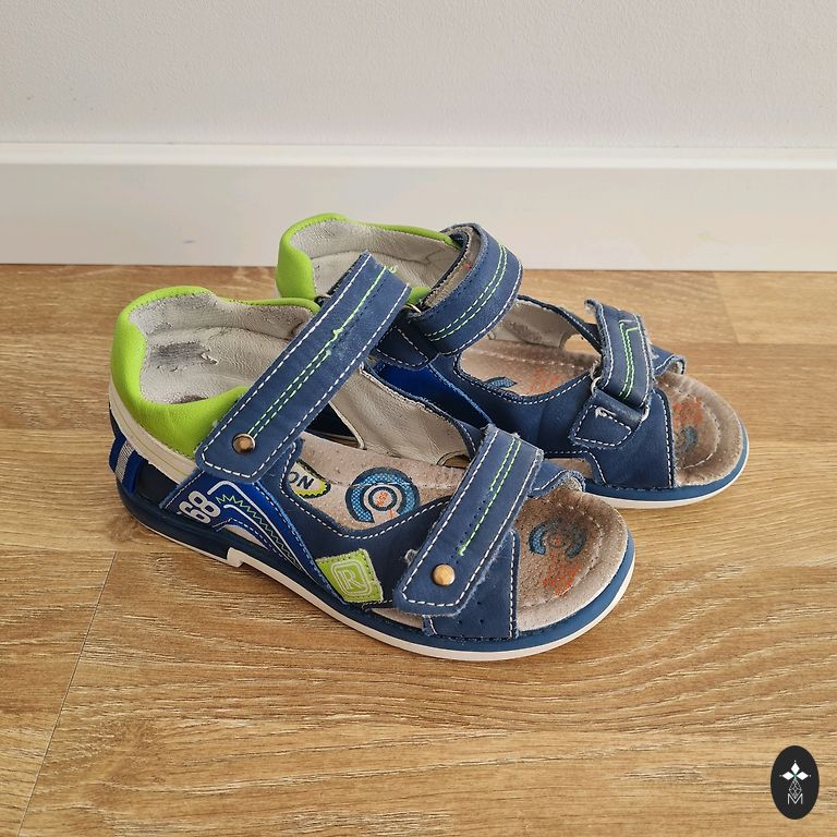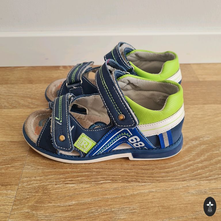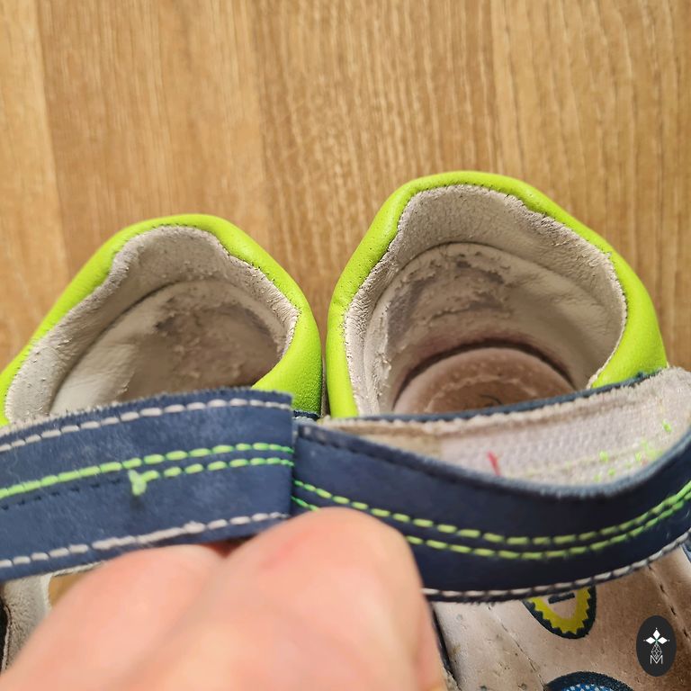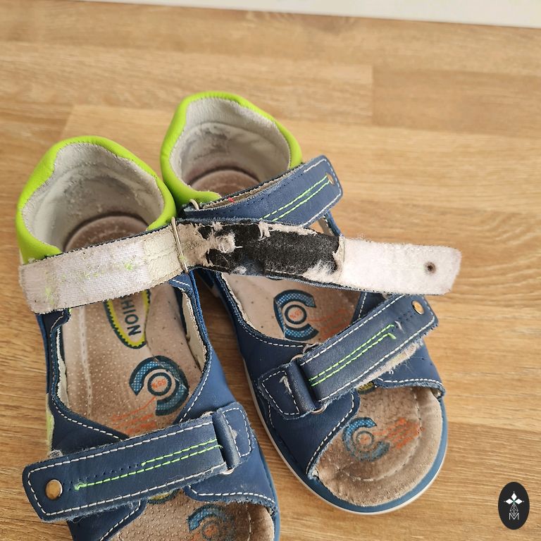 Vēl nēsājams sandeles, iekšpēda līdz 19 cm, nekas nav plēsts, lipekļi labi līp.