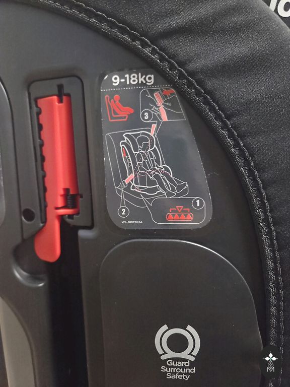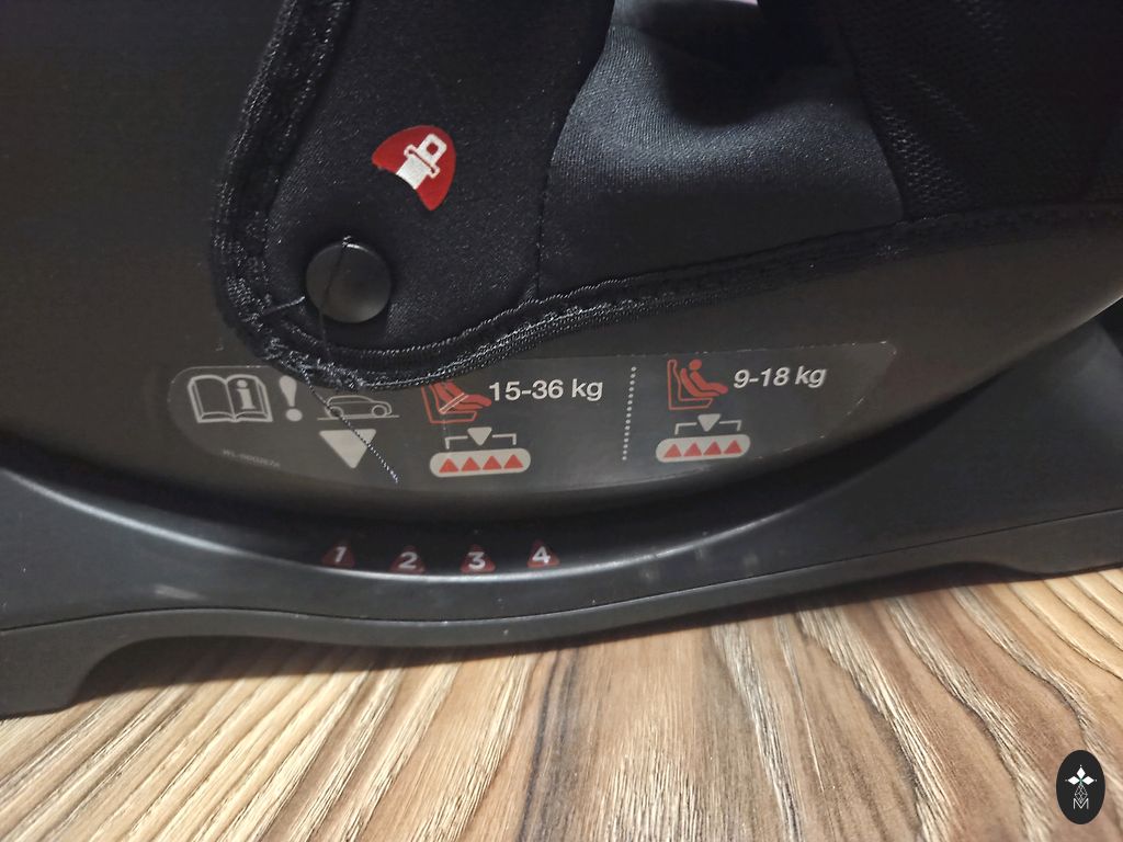 - Su reguliuojamu smūgio skydu (saugumo staliukas) 9–18 kg etapui. Po 18 kg smūgio skydas nuimamas → virsta aukštu booster sėdyniu iki 36 kg.