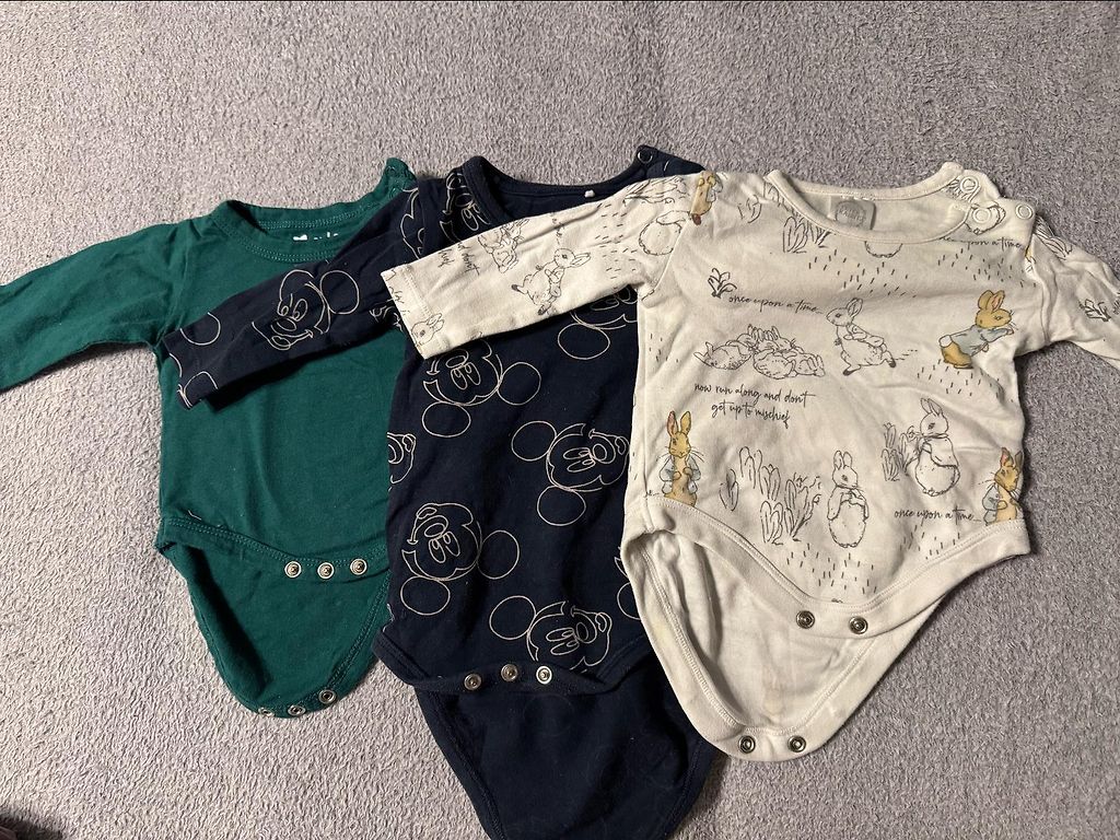 Идеальная база одежды для мальчика - боди с длинными и короткими рукавами, майки, различные брюки, комбинезон, куртка, свитера и пижамы. 33 предмета одежды. Одежда от разных брендов, большинство из Великобритании.