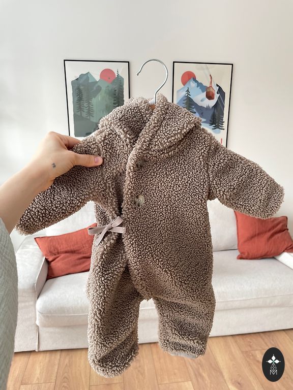 Комплект: флисовый комбинезон 68 + тапочки светло-коричневого цвета. Всё куплено новым. В очень хорошем состоянии, без дефектов.